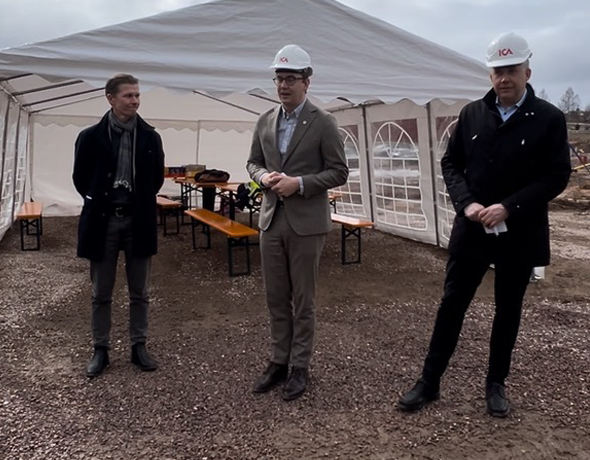 - Nu börjar vi bygga, och för mig som jobbar med fastigheter är jag otroligt stolt och glad över att kunna se bilder av visionsdelar över vad vi ska skapa, särskilt i en tid där klimatet ligger högt på agendan och vi är i en bransch som förbrukar mycket CO2. Men jag vet också hur mycket man har jobbat i projektet för att faktiskt minska avtrycken. Det finns en hel del grön betong som ska ner i marken, men det kommer också att komma en väldigt fin trästomme som kommer att synas i butiken – som också är ett sätt att faktiskt hantera den stora utmanade frågan, sa Jan-Erik Hellman.