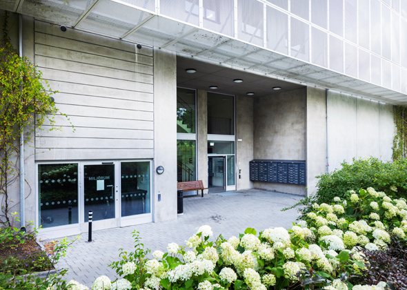 Byggnaden ligger centralt i universitetsområdet vid Videum Science Park i ett trafikorienterat läge nära centrala Teleborgsvägen. Här finns bra bussförbindelser som såväl som cykel- och gångstråk, vilket gör platsen till en självklar mötesplats för Teleborgsinvånarna.
