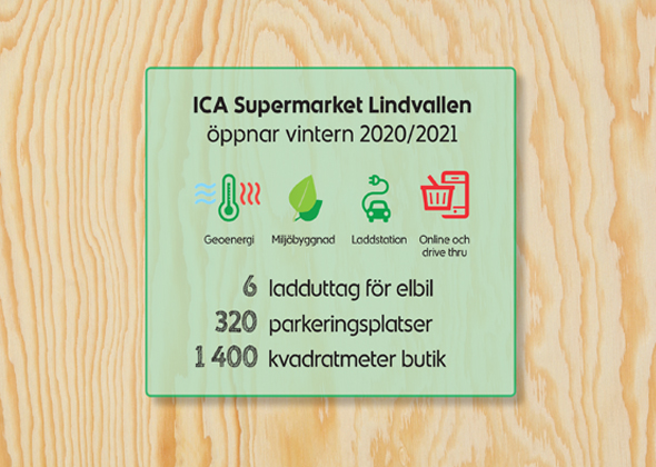 I november 2020 färdigställdes och invigdes nya ICA Supermarket Lindvallen. Här har ICA Fastigheter utvecklat den första ICA-butiken helt i massivt svenskt trä. Fullt fokus har legat på hållbarhet med målet att skapa en modern matbutik med fjällkaraktär.