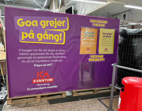 - Utmaningen med renoveringen av Kvantum-butiken har varit att hålla den i drift samtidigt som ombyggnationen sker. All personal och alla kunder måste kunna vistas i lokalen på ett säkert sätt, trots att det är en byggarbetsplats. Detta har vi löst genom att dela upp butiken i etapper och fokusera på en etapp i taget, berättar Ulrika Molander, projektledare på ICA Fastigheter.