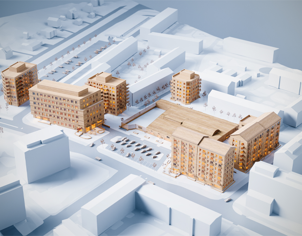 Utvecklingen av vår fastighet i Berga centrum skulle innebära ett tillskott om cirka 300 nya bostäder. Den nuvarande centrumbyggnaden som innehåller ICA-butiken planeras att rivas och ersättas med moderna bostadshus med kommersiella ytor i bottenvåningar.
