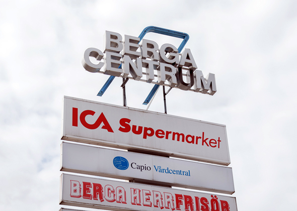 INNEHÅLL/BUTIKSPROFIL: ICA Supermarket, Apoteksgruppen, Berga hårvård, Folktandvården, förskola, Röda Korset, vårdcentral, två restauranger och kiosk